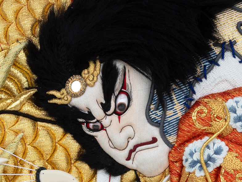 方角〈東〉。季節〈春〉。五行色〈青〉。青色を強調。瑠璃色の岩。副主題(衣装柄)〈波〉。家紋〈五瓜ニ唐花〉。